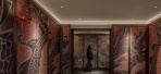 CCD 于6天前发布在住宅真正的奢华,始於一份被郑重对待的归家礼序。玄关处一道弧形的奢石墙面,如缓缓展开的卷轴,又如摺扇舒展的扇面,静候主人归来。光影在此被精心雕琢,从天际洒落,与地面的定制弧形拼花共舞,构筑起强烈的归家仪 ...